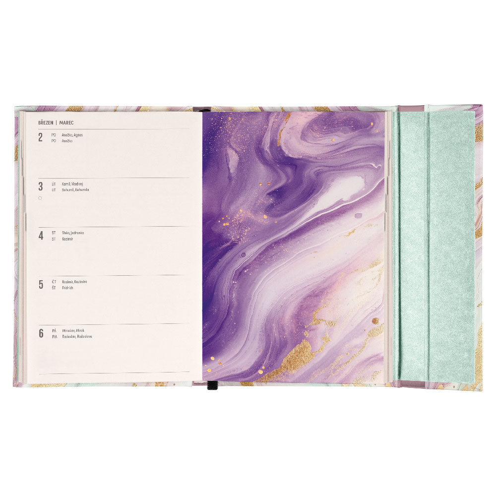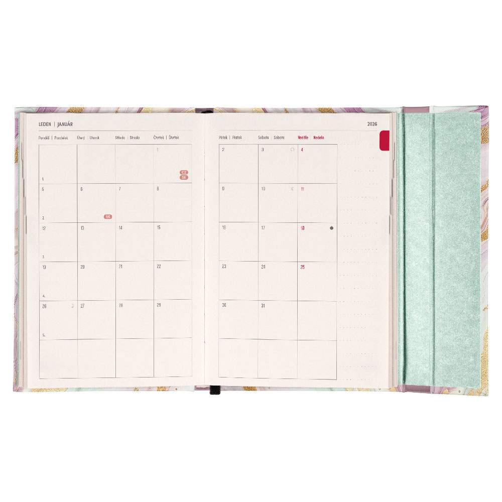 Týždenný magnetický diár 2026 B6 Ružová mramor