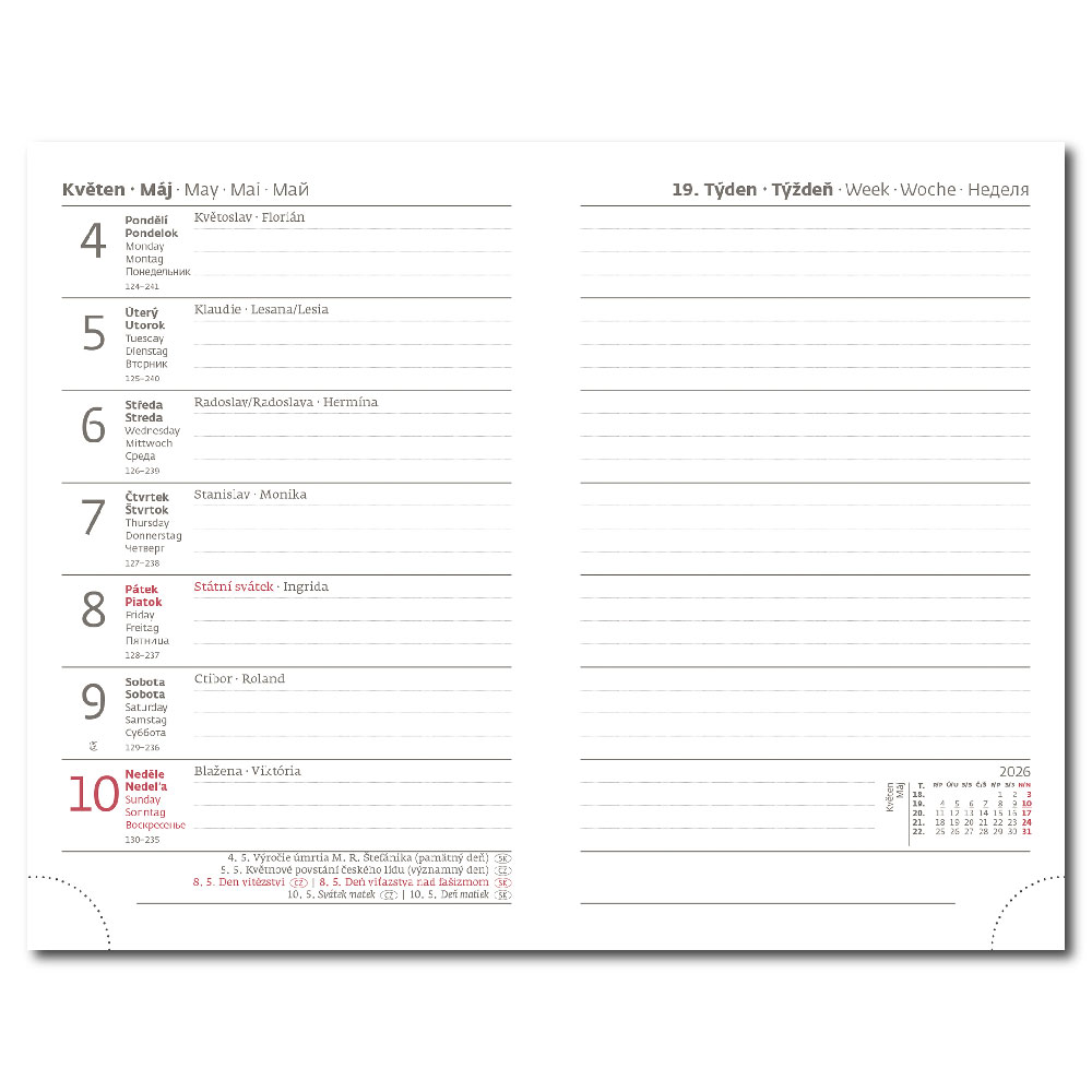 medzinárodné sviatky, ročný výhľad, týždenný layout, adresár.