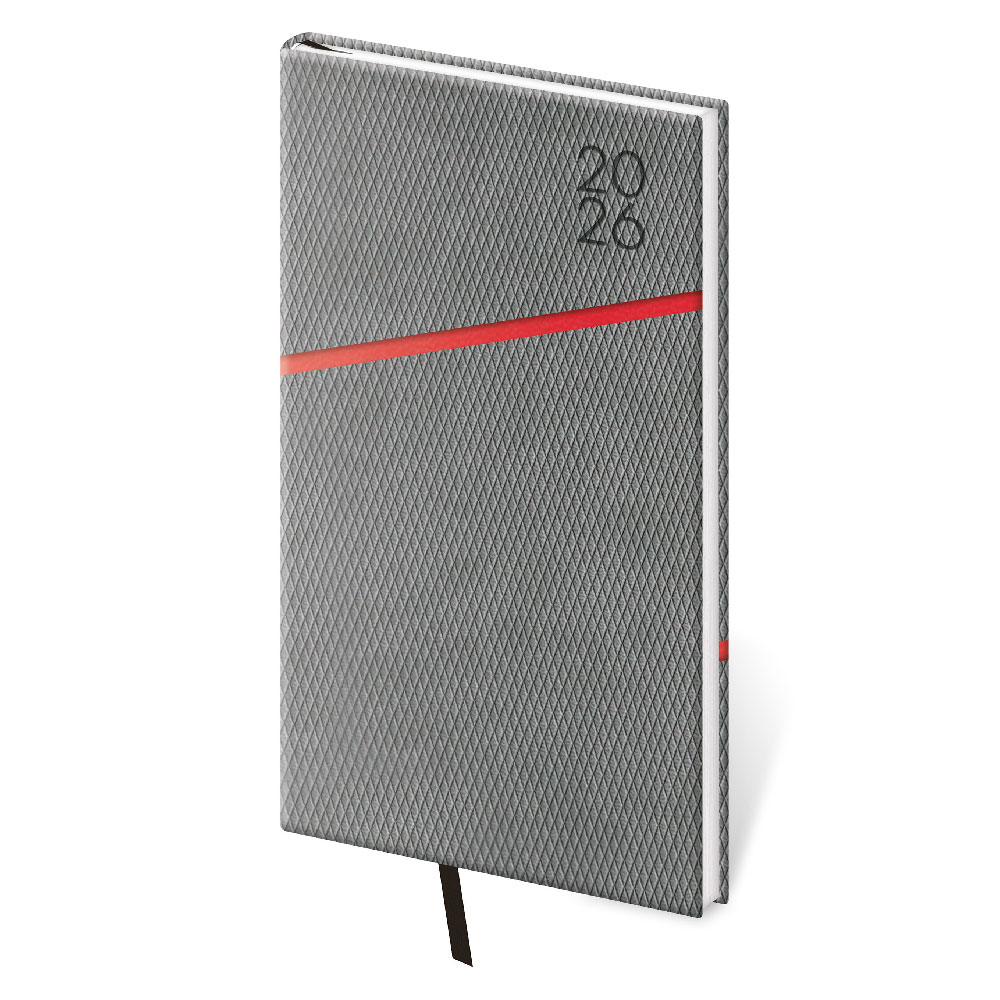 Týždenný vreckový diár 2026 Grife - sivo/červená
