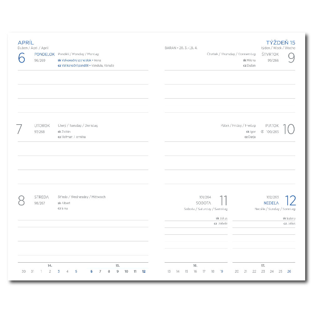 Diáre vreckové týždenné