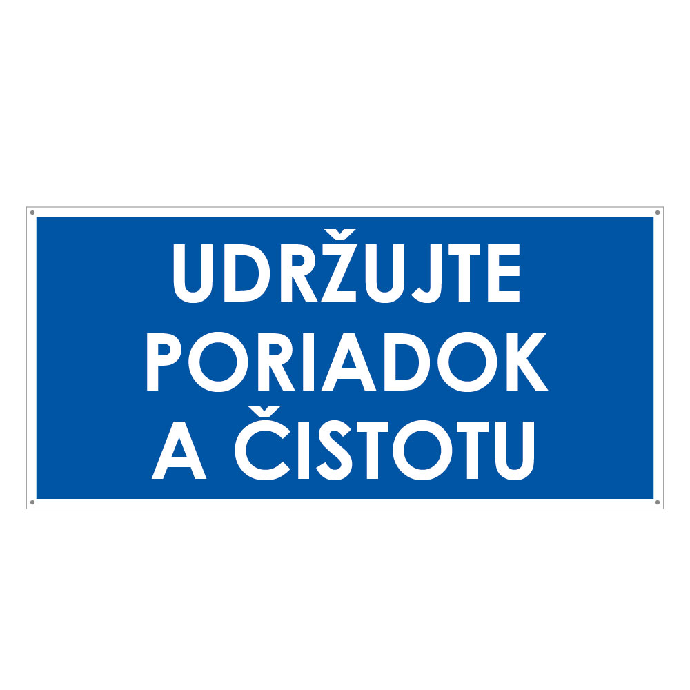 Udržujte poriadok a čistotu, modrá, plast 2mm s dierkami-190x90mm
