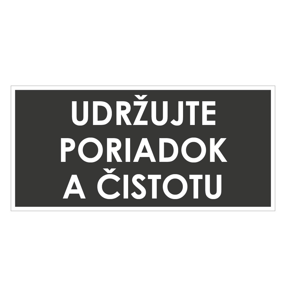 Udržujte poriadok a čistotu, šedá, plast 2mm,190x90mm