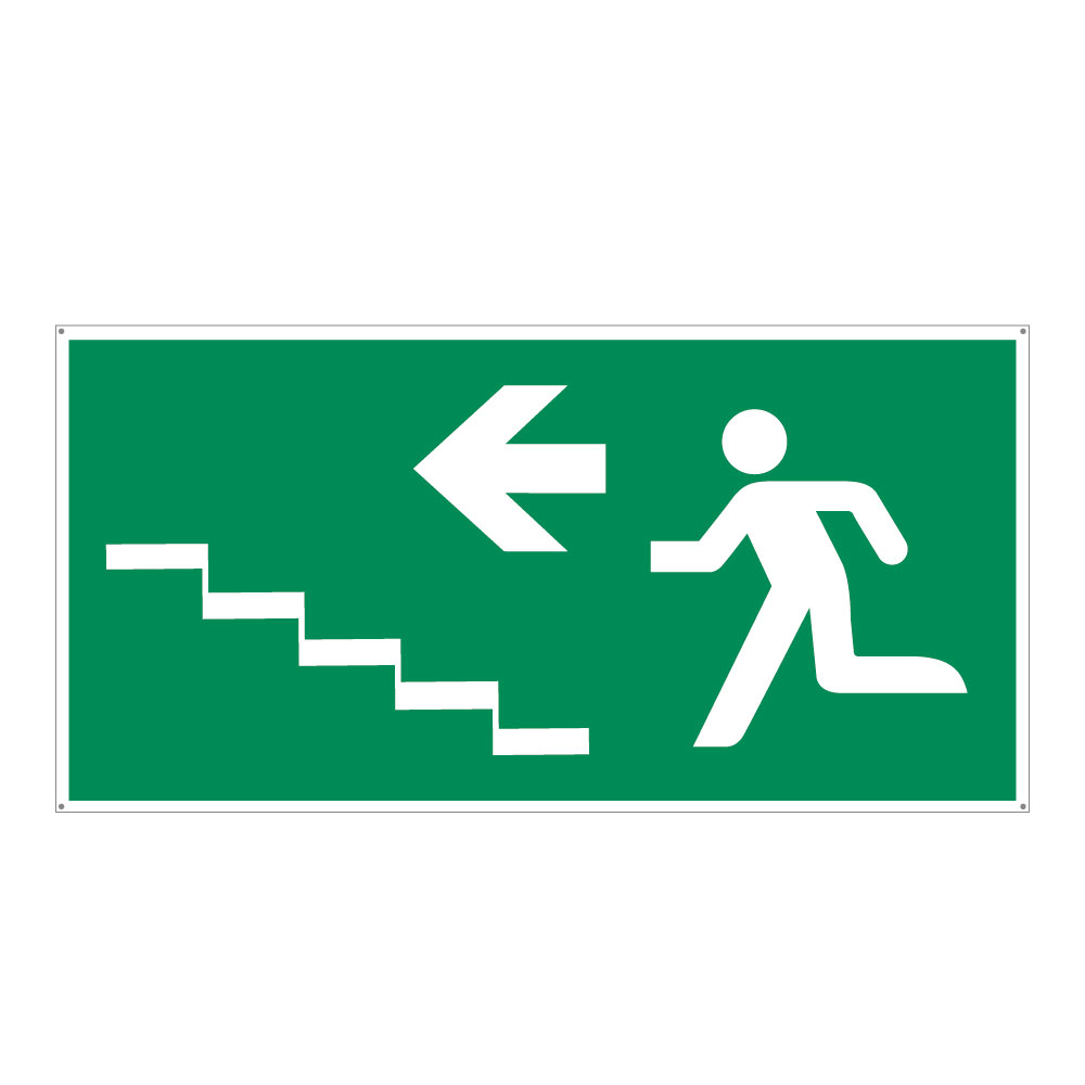 Únikové schodisko vľavo hore - bezpečnostná tabuľka, plast 2 mm s dierkami 300x150 mm