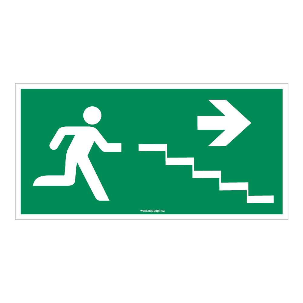 Únikové schodiště vpravo dolů - bezpečnostní tabulka, samolepka 300x150 mm