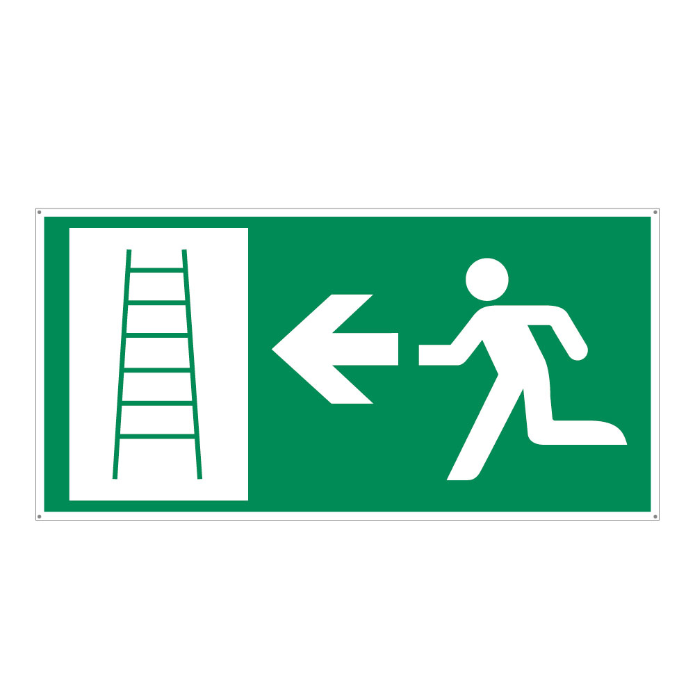 Únikový rebrík vľavo - bezpečnostná tabuľka, plast 2 mm s dierkami 300x150 mm