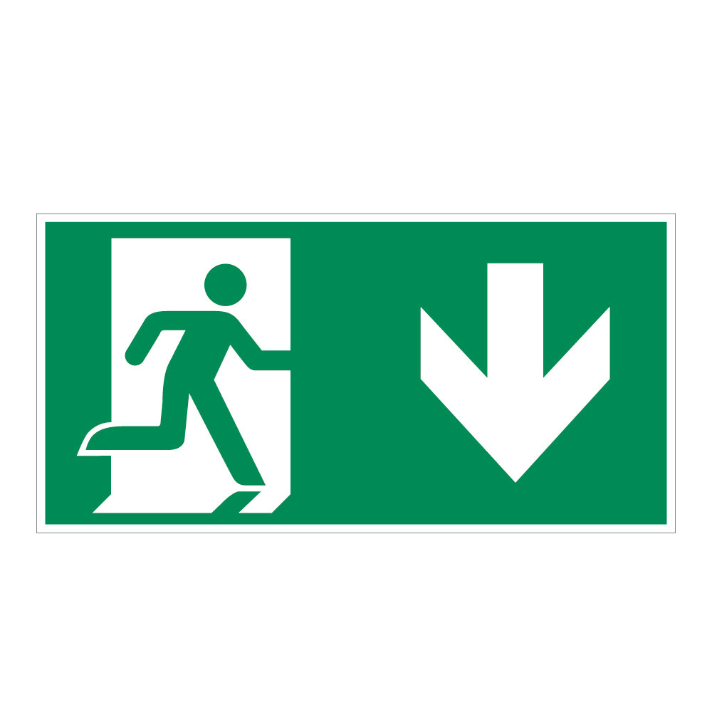 Únikový východ dole - bezpečnostná tabuľka, plast 2 mm 300x150 mm