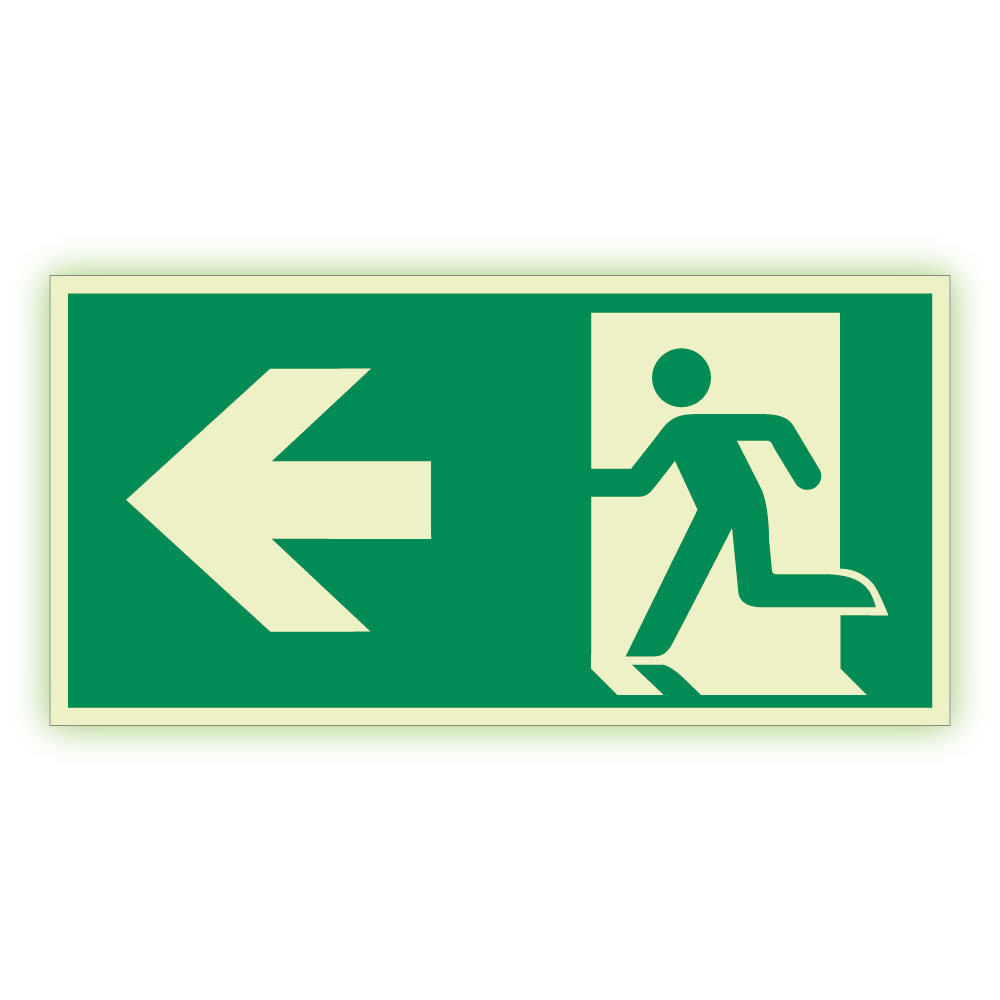 Únikový východ vlevo - fotoluminiscenční tabulka, samolepka 400x200 mm