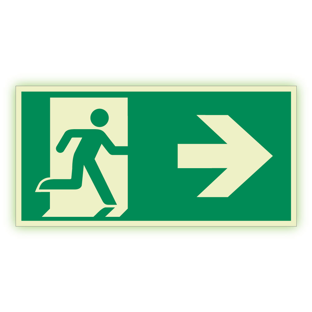 Únikový východ vpravo - fotoluminiscenční tabulka, plast 1 mm 300x150 mm