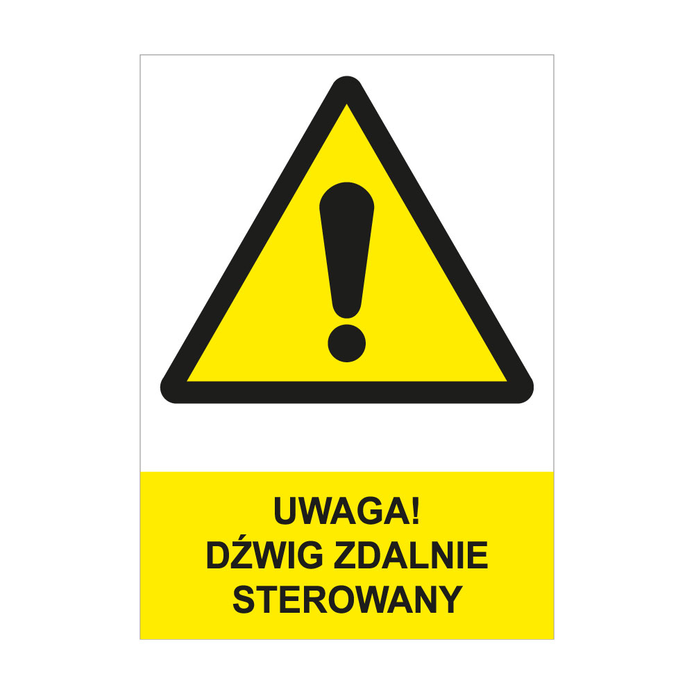 UWAGA! DŹWIG ZDALNIE STEROWANY - znak BHP, płyta PVC A4, 0,5 mm