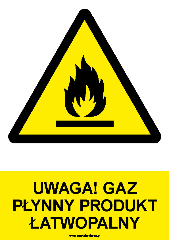 UWAGA! GAZ PŁYNNY PRODUKT ŁATWOPALNY - znak BHP z dziurkami, płyta PVC A4, 2 mm