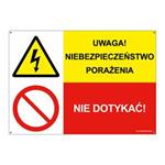 UWAGA! NIEBEZPIECZEŃSTWO PORAŻENIA - NIE DOTYKAĆ!, ZNAK ŁĄCZONY, płyta PVC 1 mm, 210x148 mm