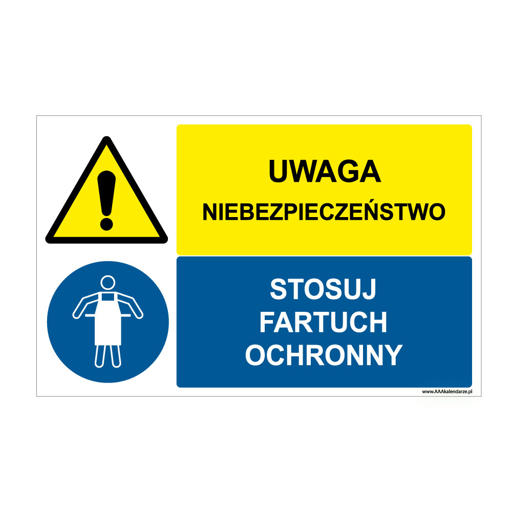 UWAGA NIEBEZPIECZEŃSTWO - STOSUJ FARTUCH OCHRONNY, ZNAK ŁĄCZONY, naklejka 95x60 mm