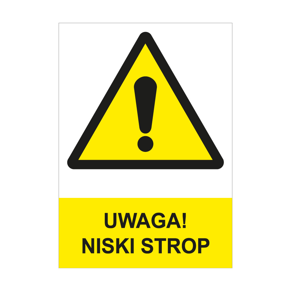 UWAGA! NISKI STROP - znak BHP, płyta PVC A4, 2 mm