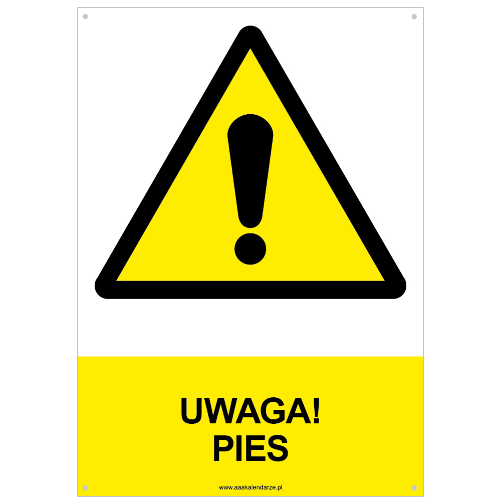 UWAGA! PIES - znak BHP z dziurkami, płyta PVC A4, 2 mm