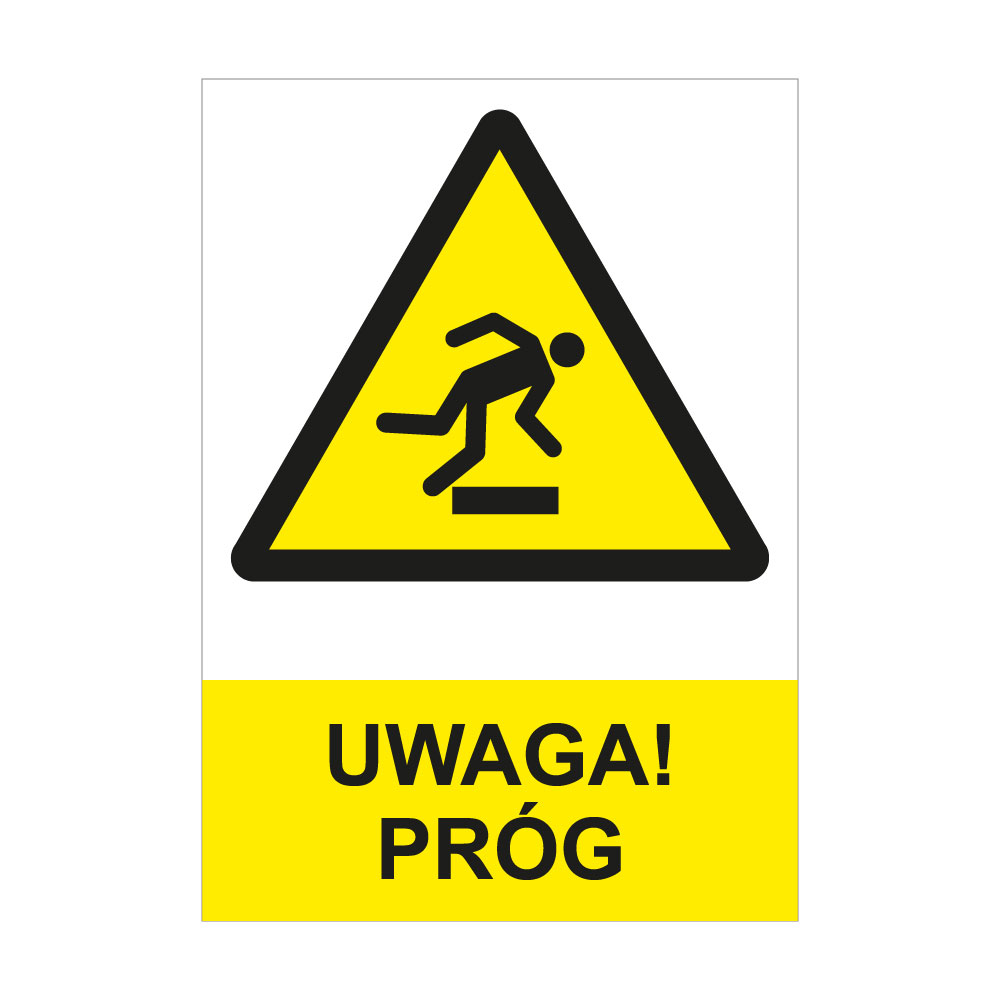 UWAGA! PRÓG - znak BHP, płyta PVC A4, 2 mm