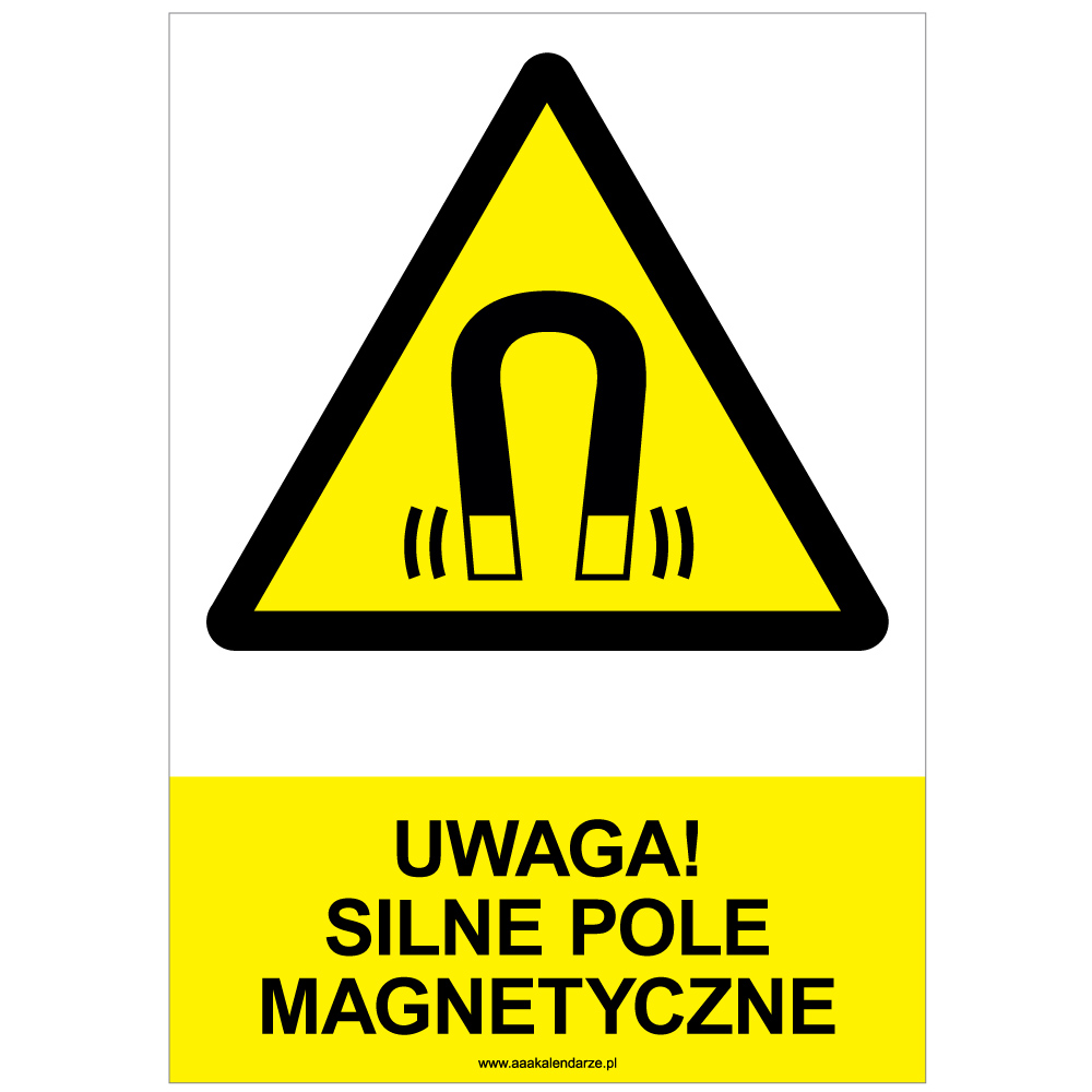 UWAGA! SILNE POLE MAGNETYCZNE - znak BHP, naklejka A4