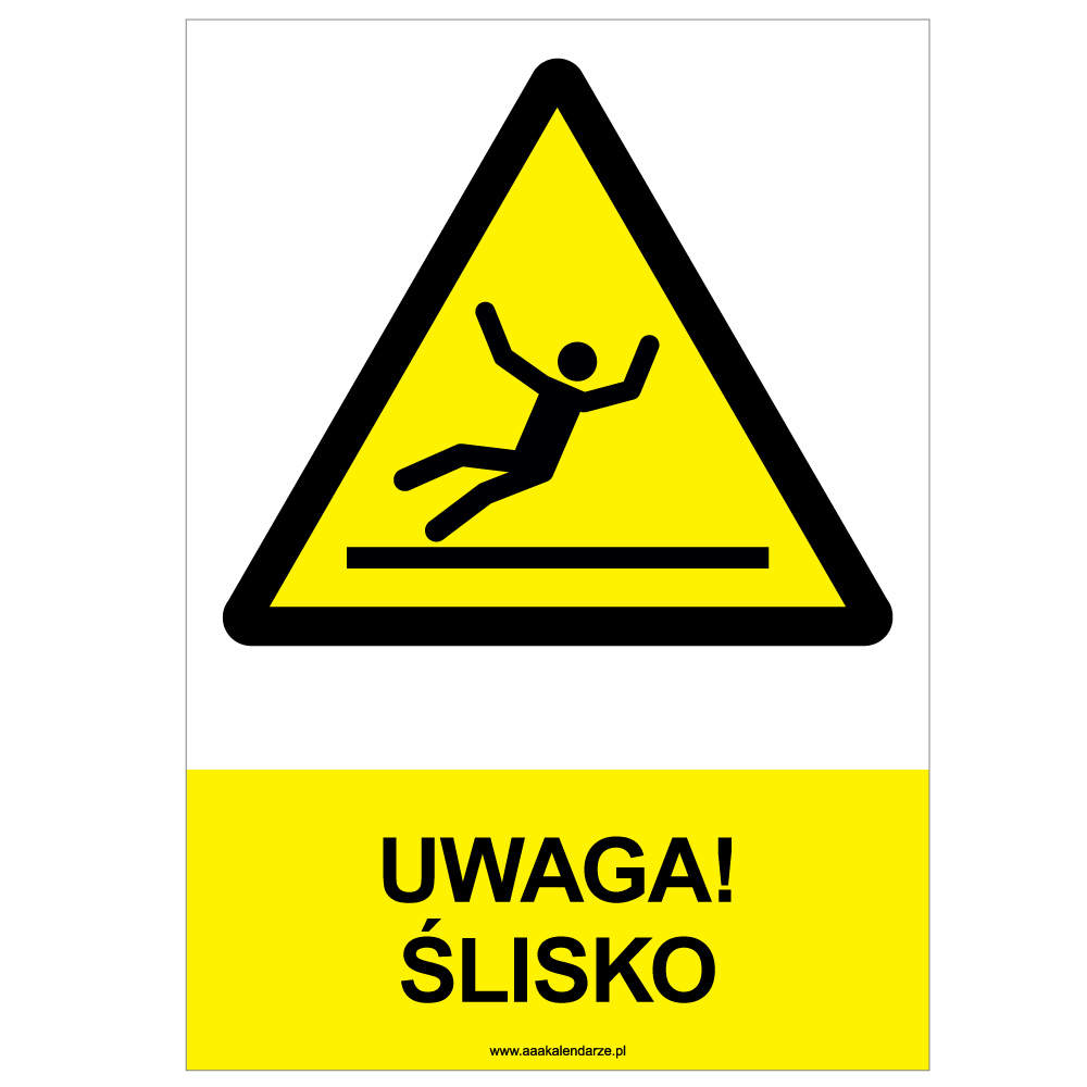 UWAGA! ŚLISKO - znak BHP, płyta PVC A4, 2 mm