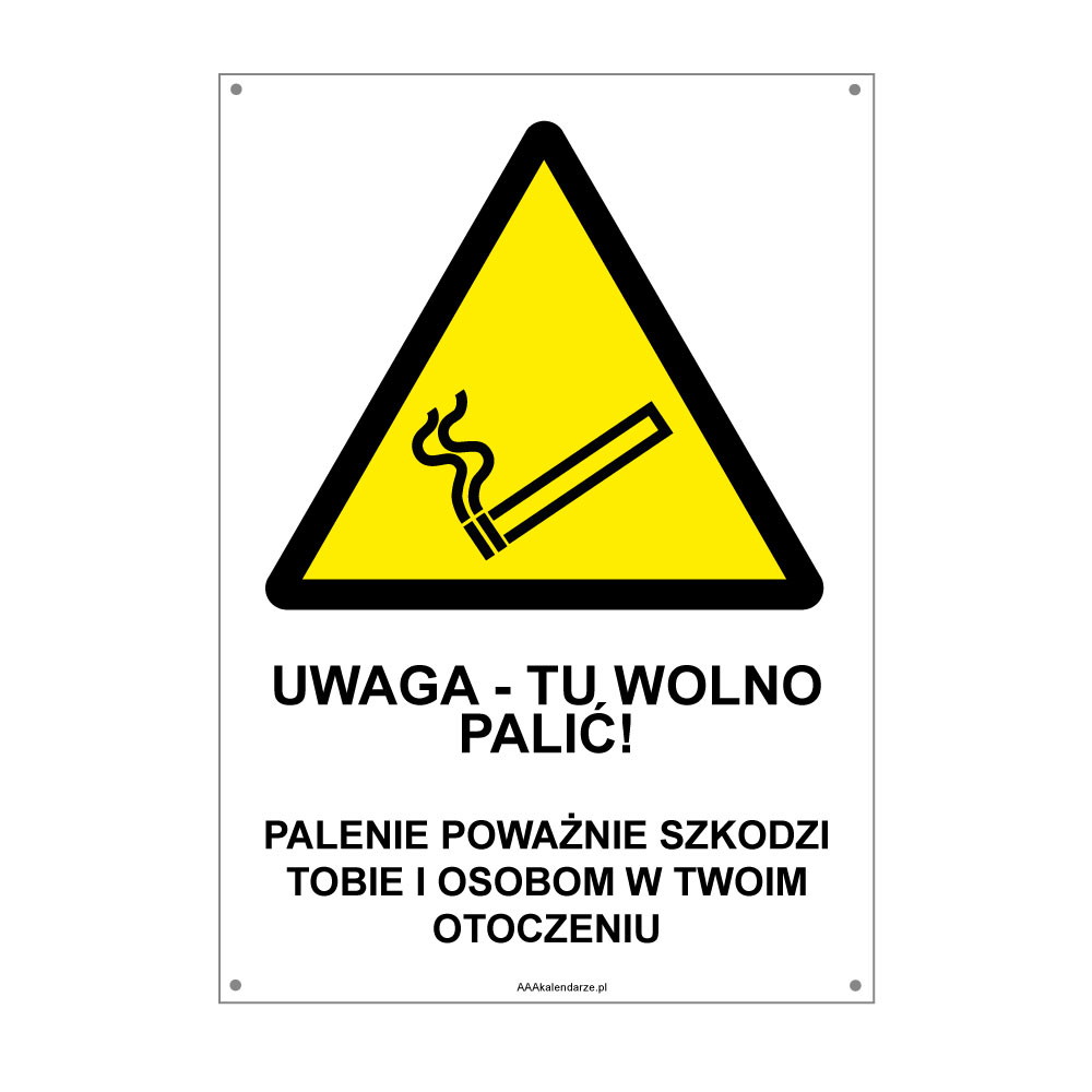 UWAGA - TU WOLNO PALIĆ, płyta PVC 2 mm z dziurkami, 148x210 mm