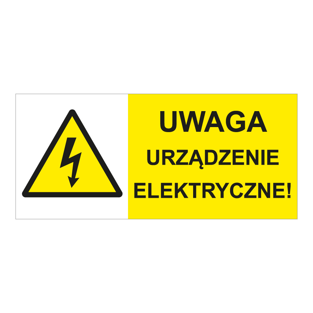 UWAGA URZĄDZENIE ELEKTRYCZNE! - znak BHP, 0,5 mm płyta PVC 90 x 40 mm