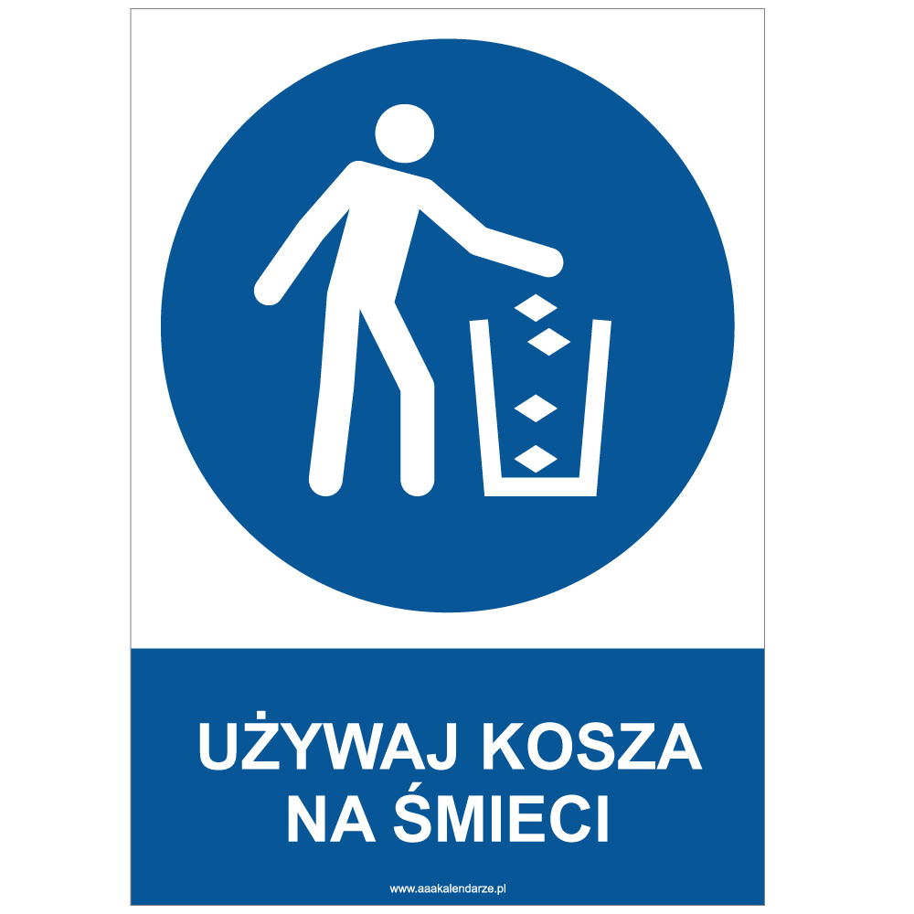 UŻYWAJ KOSZA NA ŚMIECI - znak BHP, płyta PVC A4, 2 mm