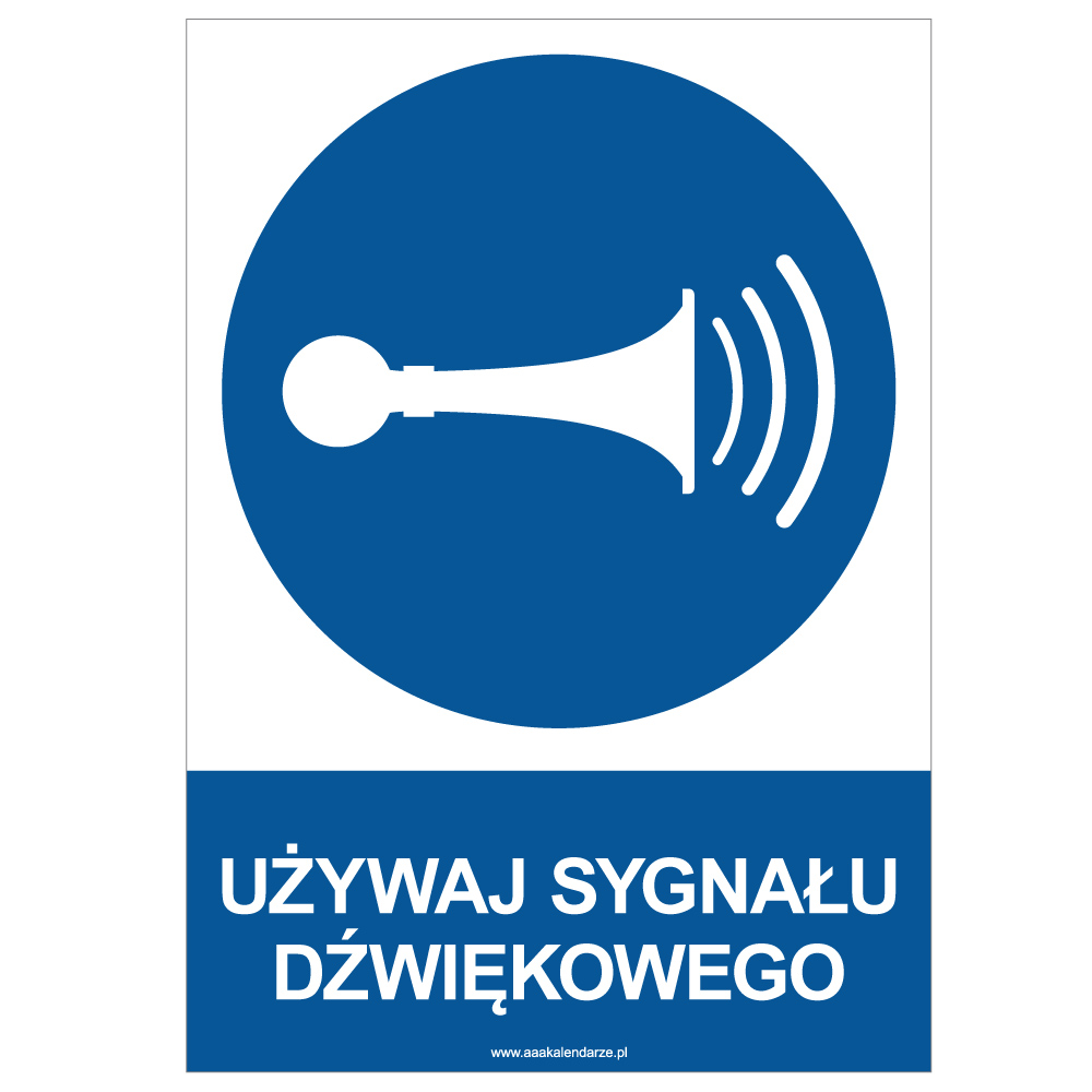 UŻYWAJ SYGNAŁU DŹWIĘKOWEGO - znak BHP, płyta PVC A4, 2 mm