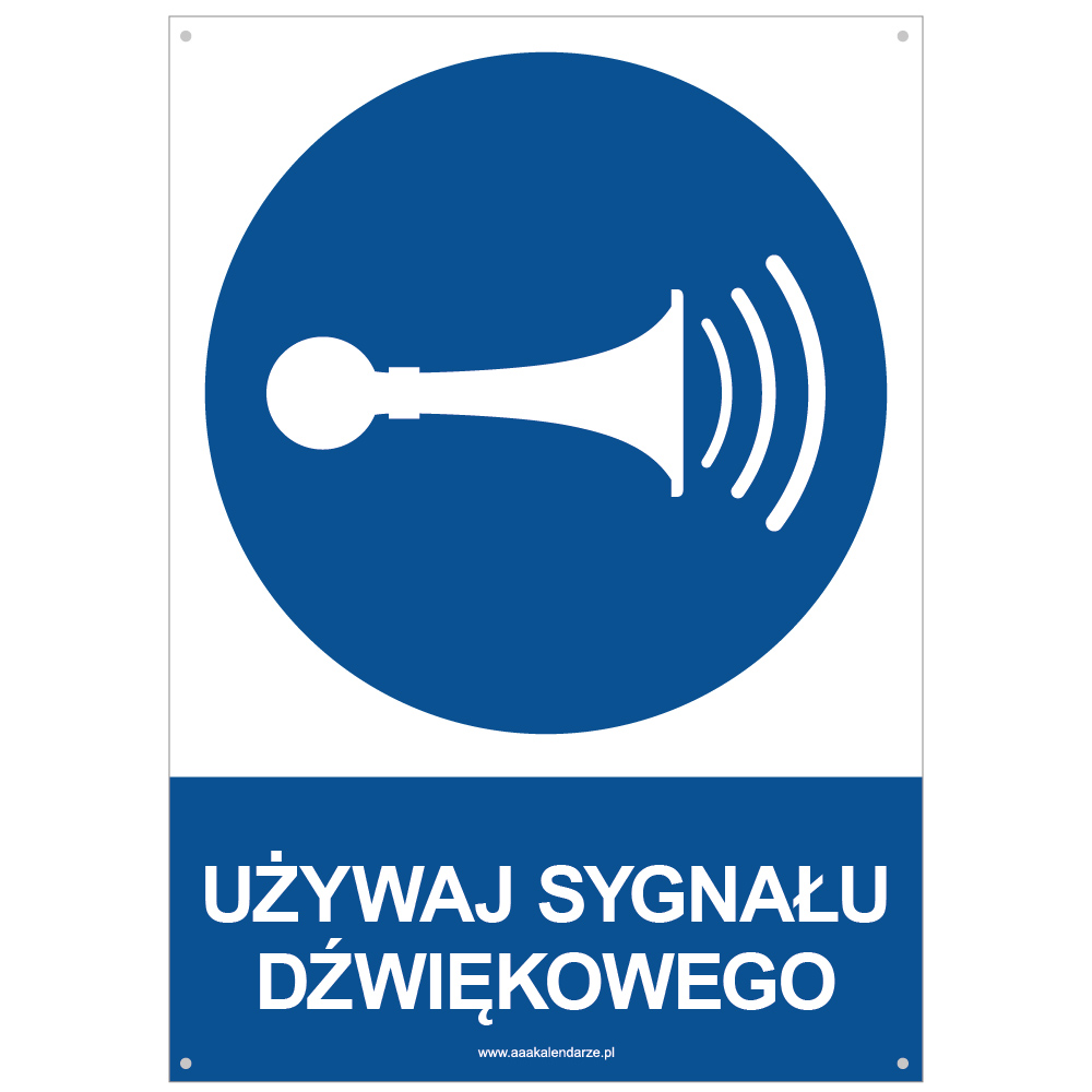 UŻYWAJ SYGNAŁU DŹWIĘKOWEGO - znak BHP z dziurkami, płyta PVC A4, 2 mm