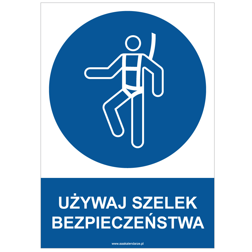 UŻYWAJ SZELEK BEZPIECZEŃSTWA - znak BHP, płyta PVC A4, 2 mm