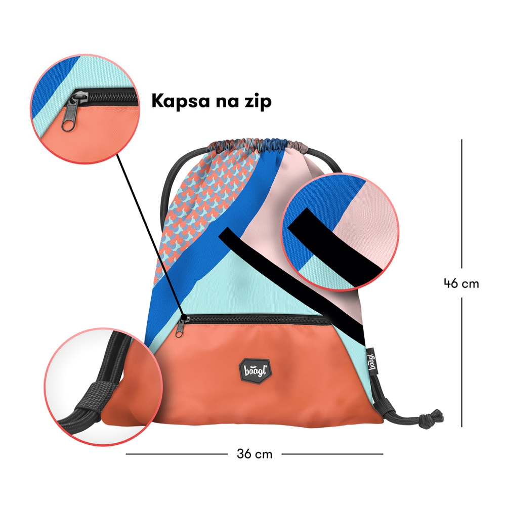 • Vrecko je vyrobené z pevného umývateľného materiálu a v jeho dolnej časti je umiestnená praktická kapsička so zipsom.