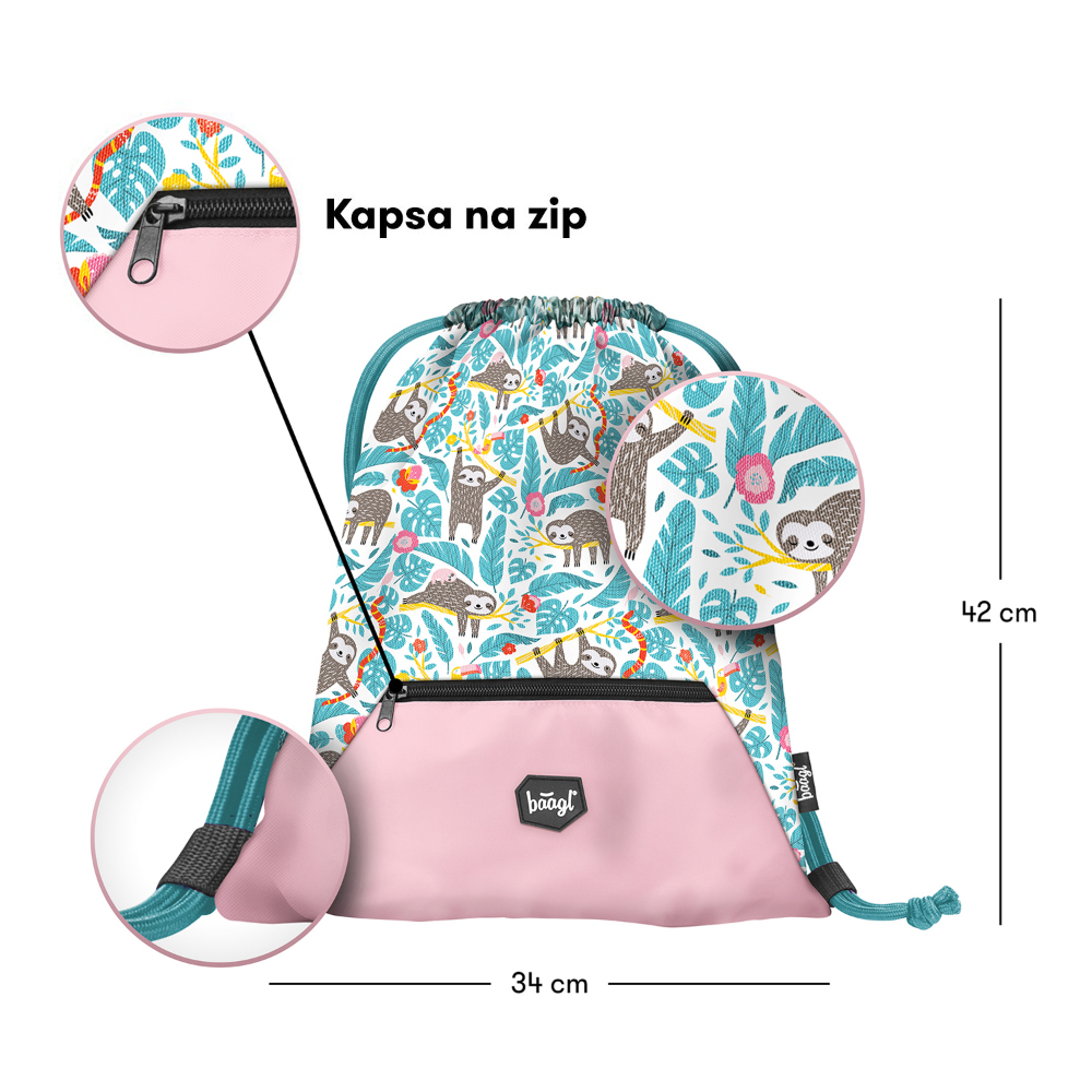 • Vrecko je vyrobené z pevného umývateľného materiálu a v jeho dolnej časti je umiestnená praktická kapsička so zipsom.