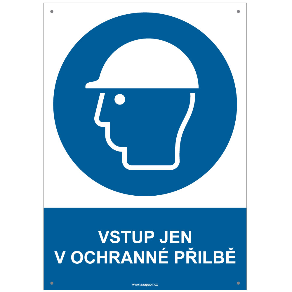 VSTUP JEN V OCHRANNÉ PŘILBĚ - bezpečnostní tabulka s dírkami, plast A4, 2 mm