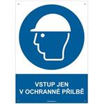 VSTUP JEN V OCHRANNÉ PŘILBĚ - bezpečnostní tabulka, samolepka A4