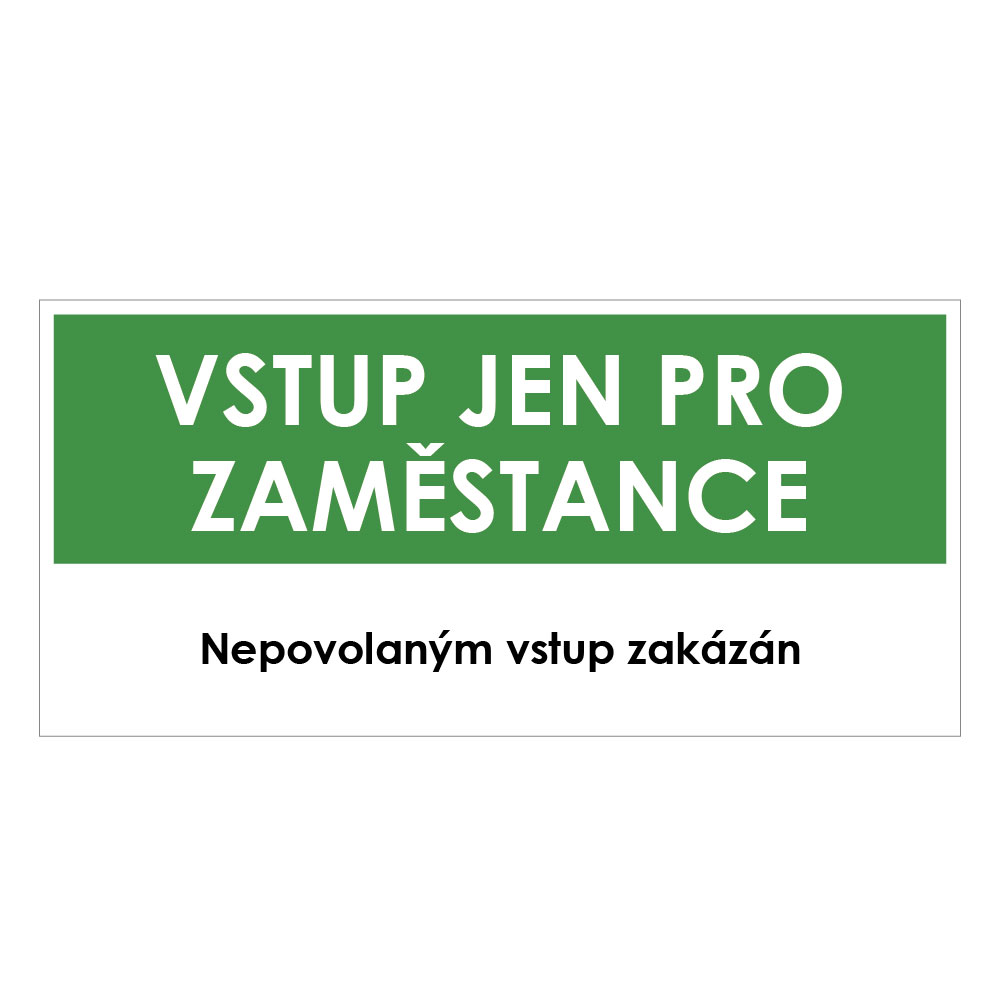 VSTUP PRO ZAMĚSTNANCE, zelená, plast 1 mm 190x90 mm