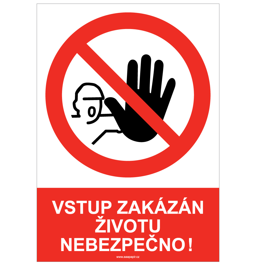 VSTUP ZAKÁZÁN ŽIVOTU NEBEZPEČNO! - bezpečnostní tabulka, samolepka A5