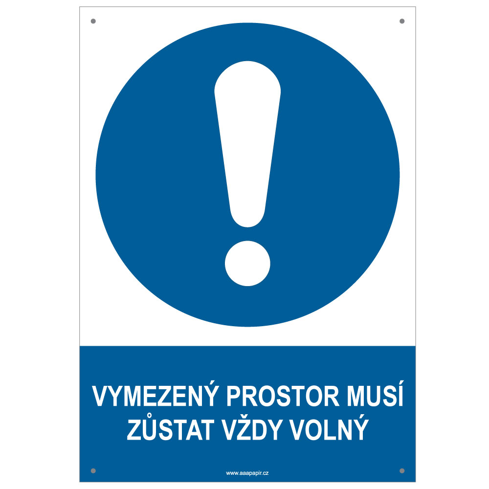 VYMEZENÝ PROSTOR MUSÍ ZŮSTAT VŽDY VOLNÝ - bezpečnostní tabulka s dírkami, plast A4, 2 mm