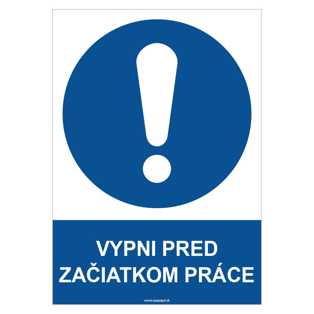 Vypni pred začiatkom práce - bezpečnostná tabuľka, samolepka A4