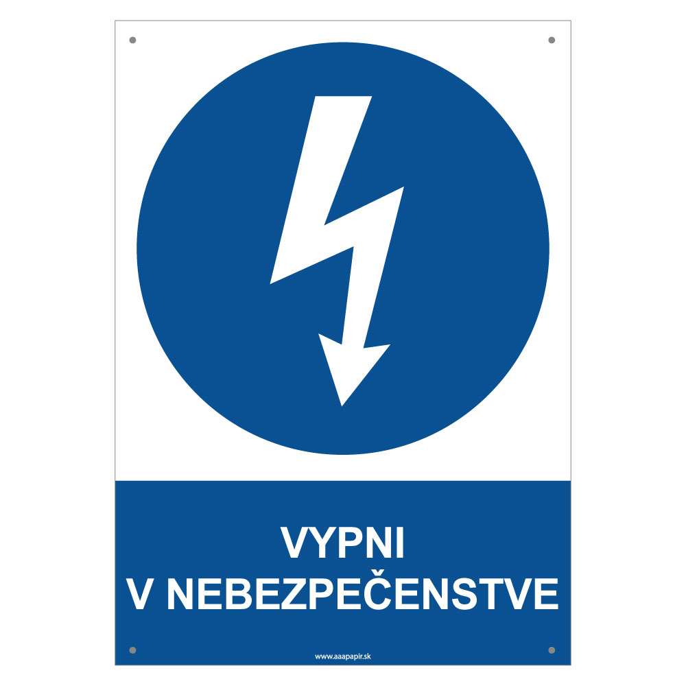 Vypni v nebezpečenstve - bezpečnostná tabuľka s dierkami, plast 2 mm - A4