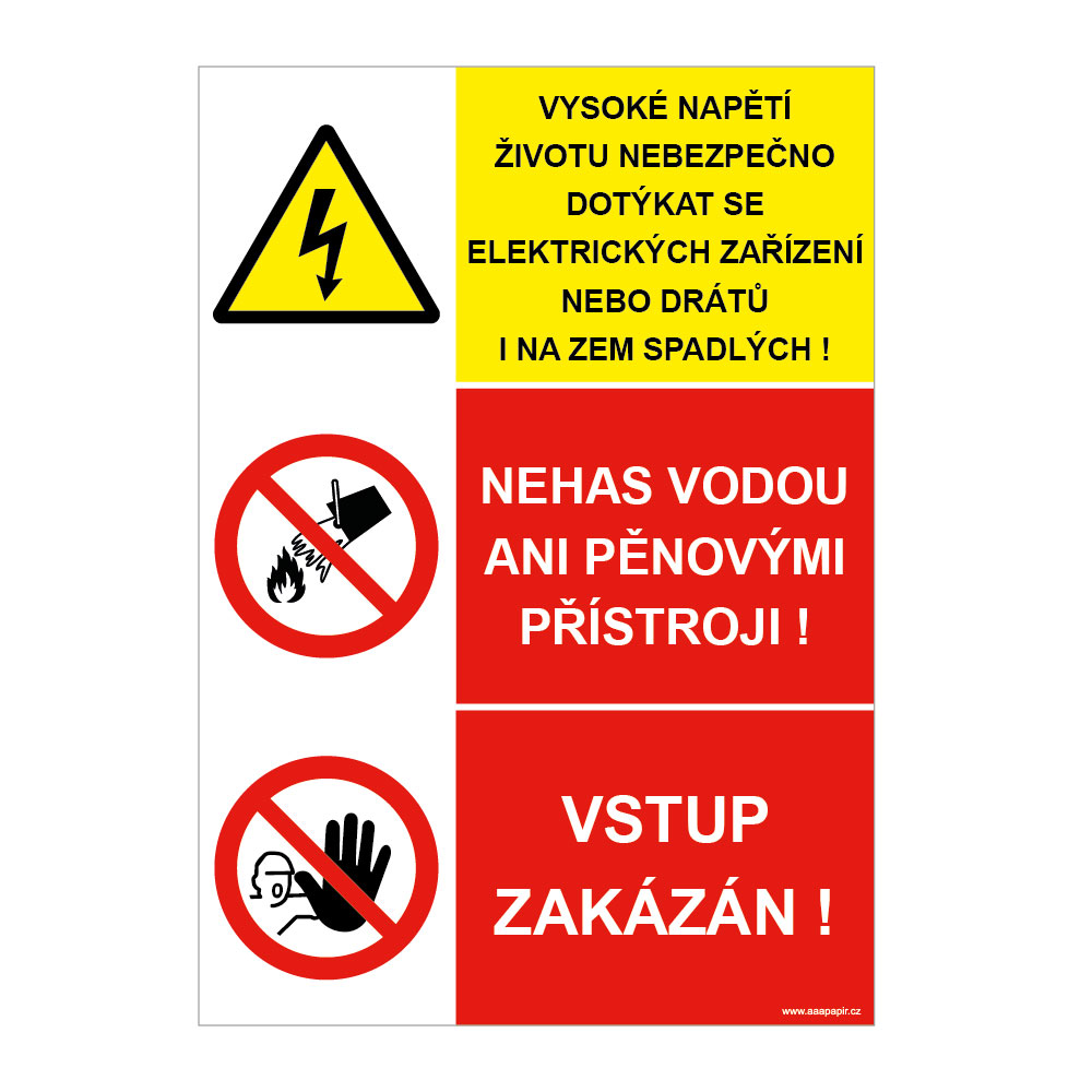 VYSOKÉ NAPĚTÍ (DRÁTY)- NEHAS VODOU - VSTUP ZAKÁZÁN, plast 1mm, A5
