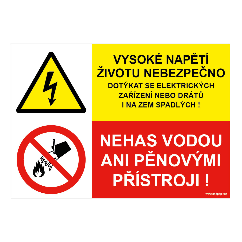 Vysoké napětí - životu nebezpečno dotýkat se elektrických zařízení nebo drátů i na zem spadlých - nehas vodou …