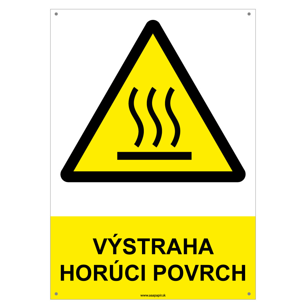 Výstraha! Horúci povrch - bezpečnostná tabuľka s dierkami, plast 2 mm - A4