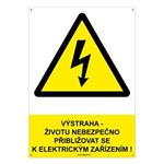 VÝSTRAHA - ŽIVOTU NEBEZPEČNO PŘIBLIŽOVAT SE K ELEKTRICKÝM ZAŘÍZENÍM! - bezpečnostní tabulka, plast A4, 0,5 mm
