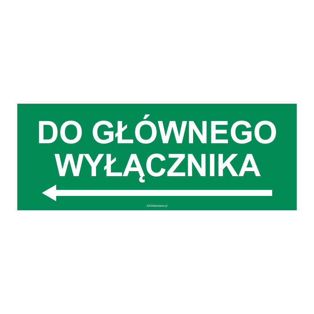 W LEWO DO GŁÓWNEGO WYŁĄCZNIKA , naklejka 210x80 mm