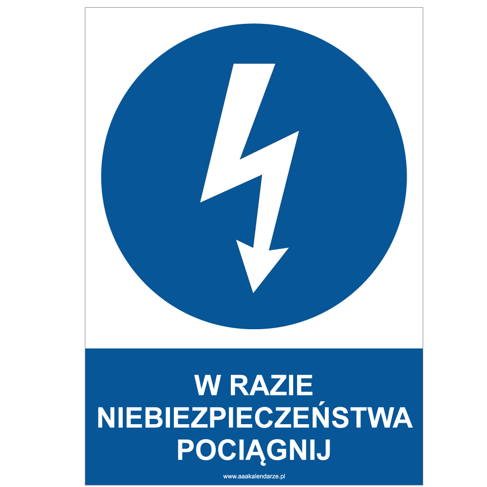 W RAZIE NIEBEZPIECZEŃSTWA POCIĄGNIJ - znak BHP, płyta PVC A4, 0,5 mm