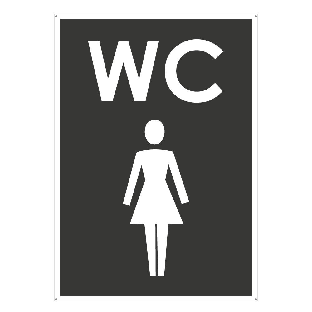 WC ŽENY, šedá, plast s dírami 2 mm 105x148 mm