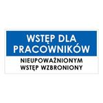 WSTĘP TYLKO DLA PRACOWNIKÓW, płyta PVC 1 mm 190x90 mm