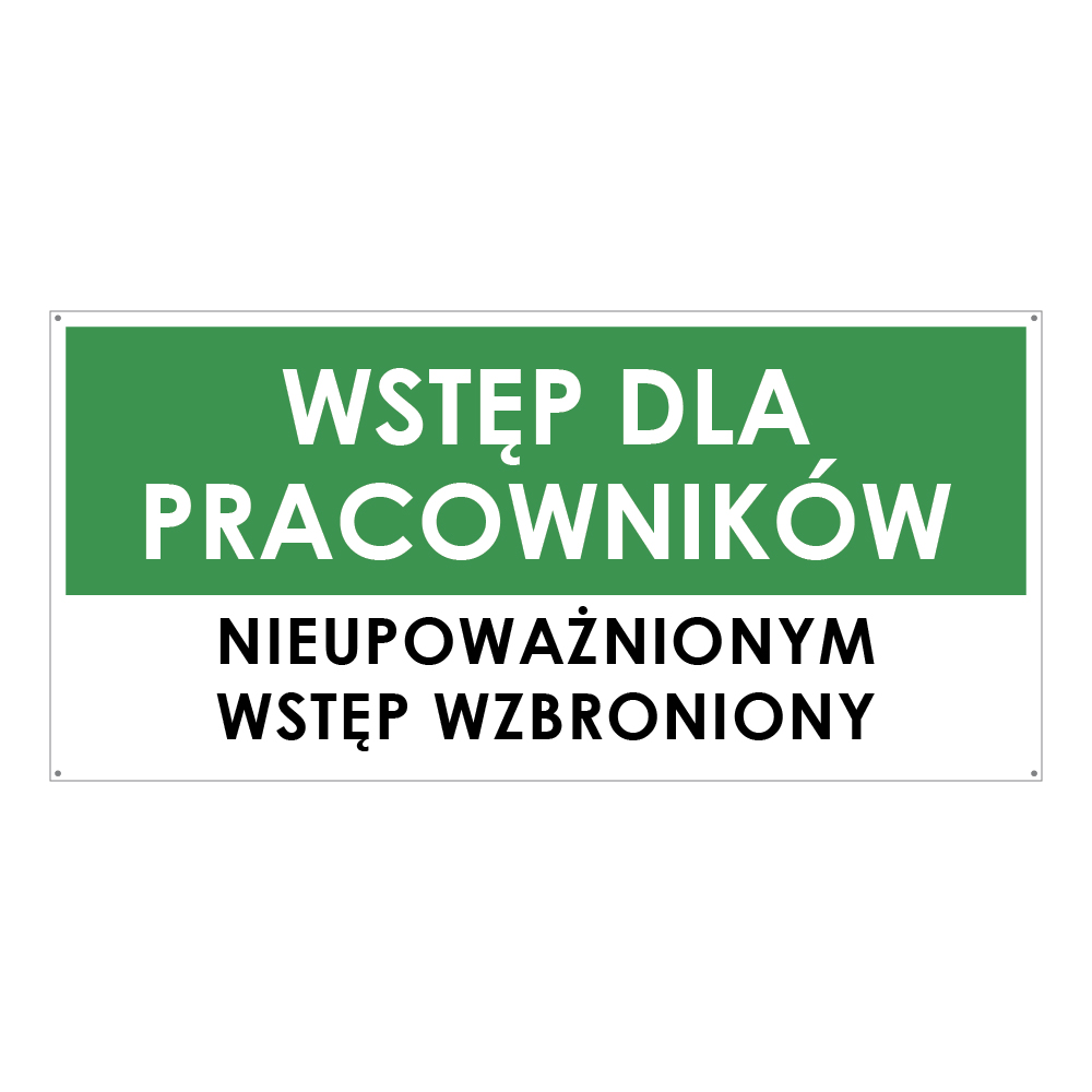 WSTĘP TYLKO DLA PRACOWNIKÓW, zielony - płyta PVC 2 mm z dziurkami 190x90 mm