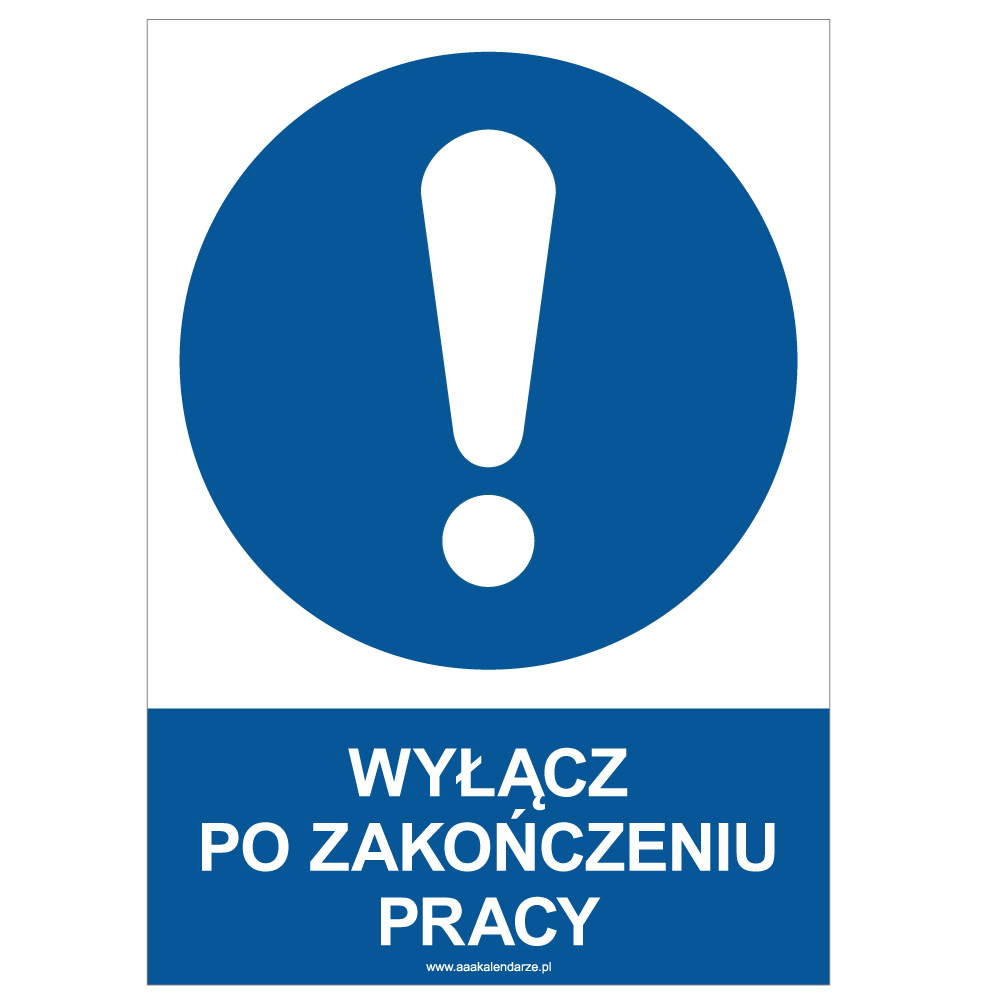 WYŁĄCZ PO ZAKOŃCZENIU PRACY - znak BHP, płyta PVC A4, 0,5 mm