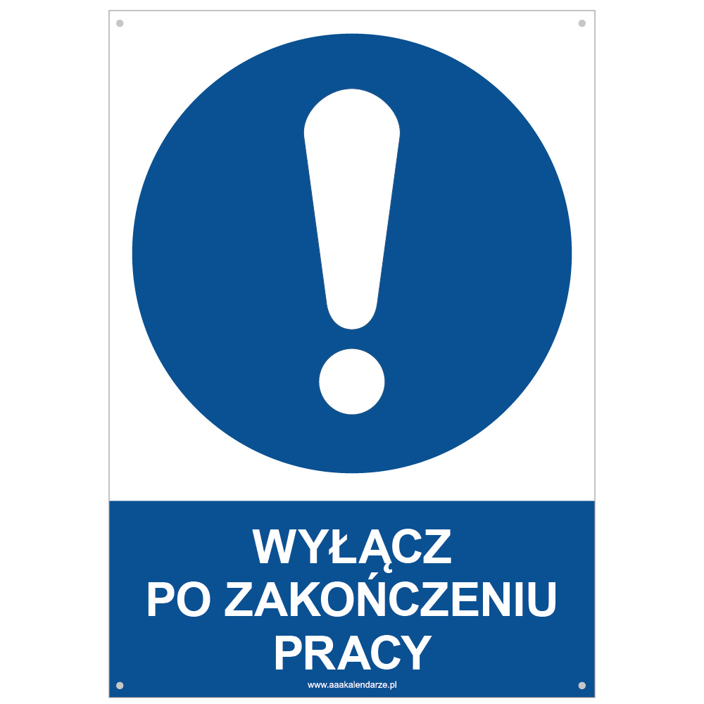 WYŁĄCZ PO ZAKOŃCZENIU PRACY - znak BHP z dziurkami, płyta PVC A4, 2 mm