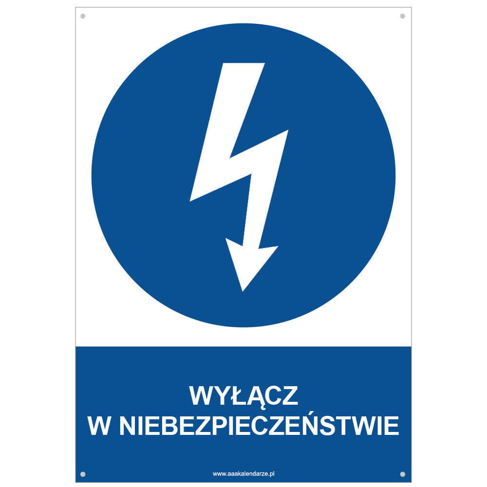 WYŁĄCZ W NIEBEZPIECZEŃSTWIE - znak BHP z dziurkami, płyta PVC A4, 2 mm