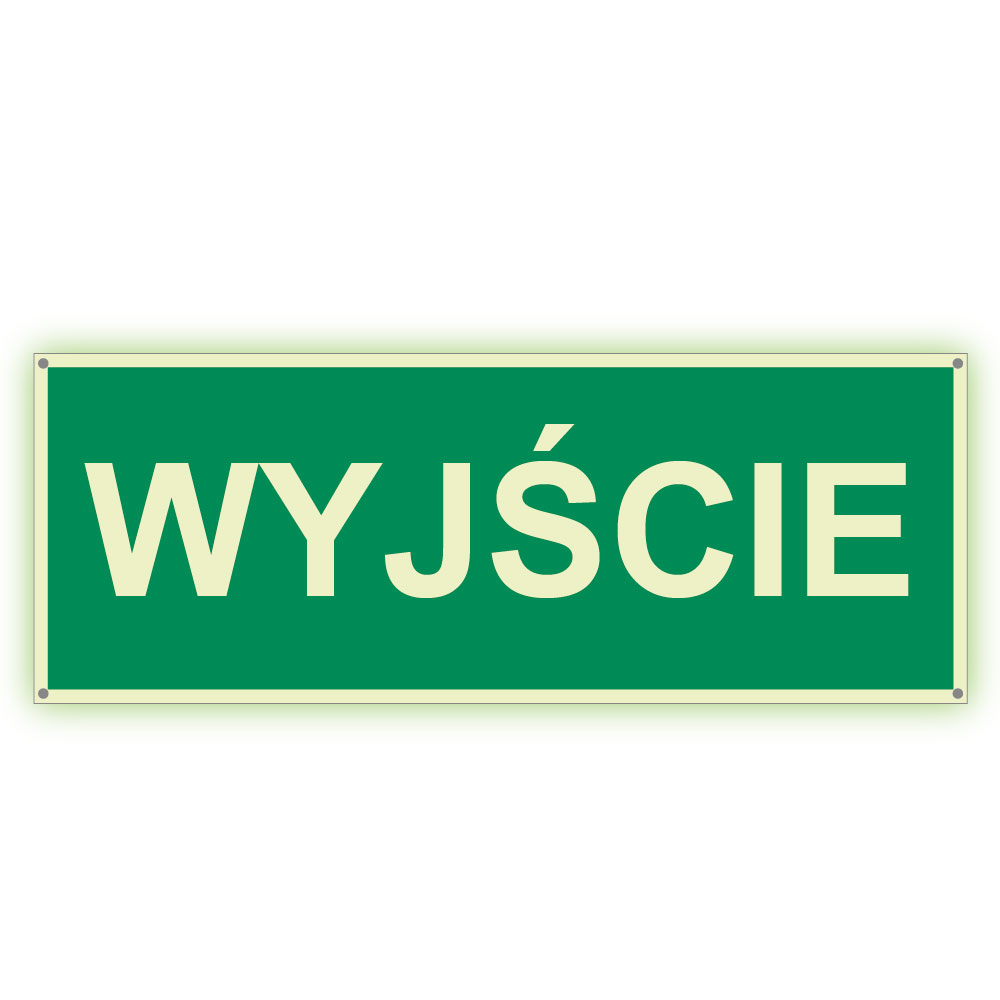 Wyjście - fotoluminescencyjny znak z dziurkami, płyta PVC 2 mm 200x75 mm