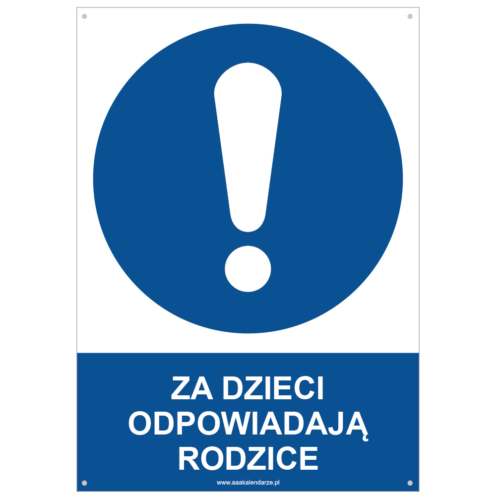 ZA DZIECI ODPOWIADAJĄ RODZICE - znak BHP z dziurkami, płyta PVC A4, 2 mm